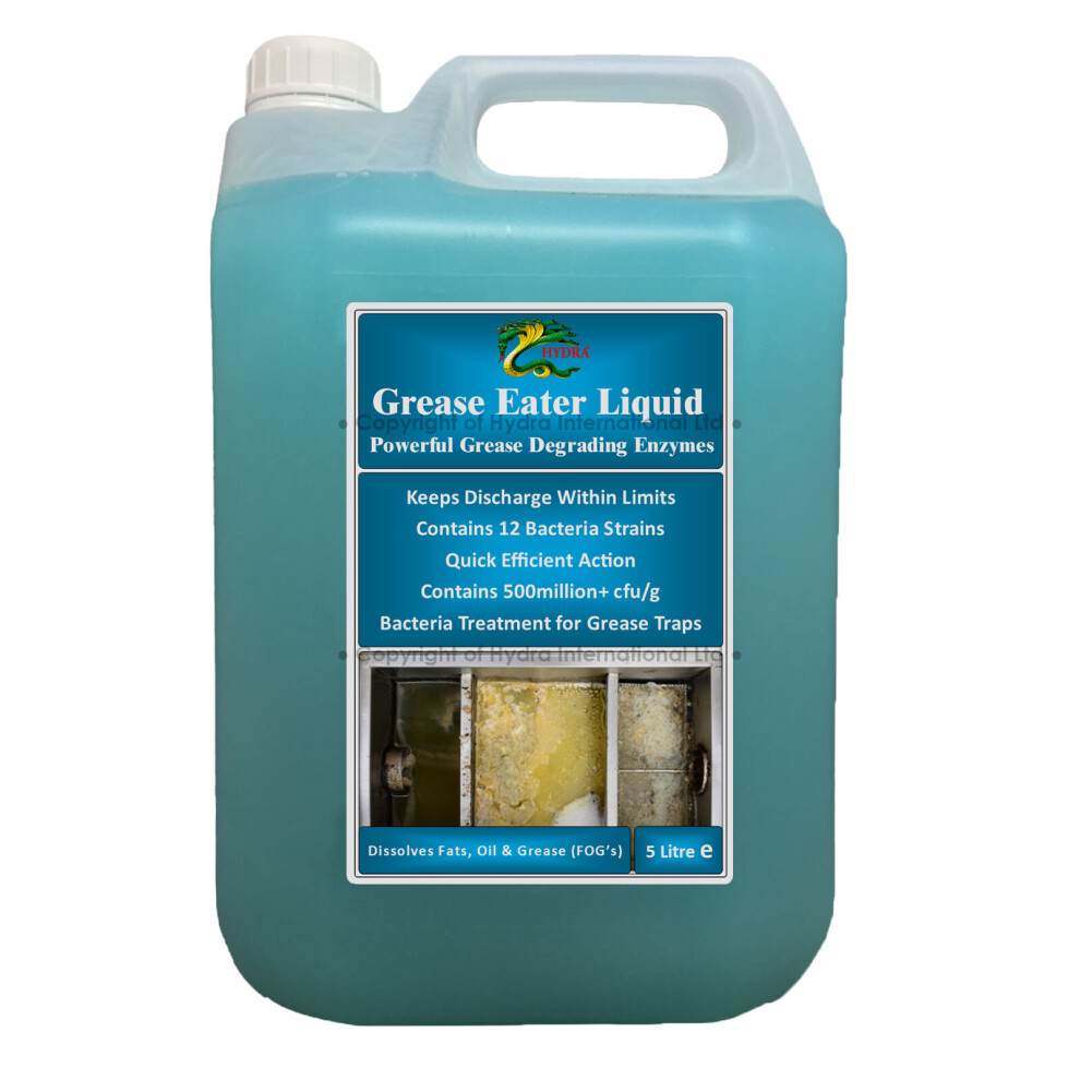 Hydra (5L) Grease-Eater Liquid44.00Buy!£Onbuy.comDelivery: in United Kingdom ReportFeatures & Advantages Hydra Grease-Eater Liquid has 12 bacteria strains with over 500 million cfu/g. Hydra Grease-Eater Liquid is a ...