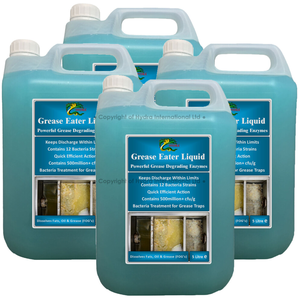 Hydra Grease-Eater Liquid (4x5L)125.00Buy!£Onbuy.comDelivery: in United Kingdom ReportFeatures & Advantages Hydra Grease-Eater Liquid has 12 bacteria strains with over 500 million cfu/g. Hydra Grease-Eater Liquid is a ...