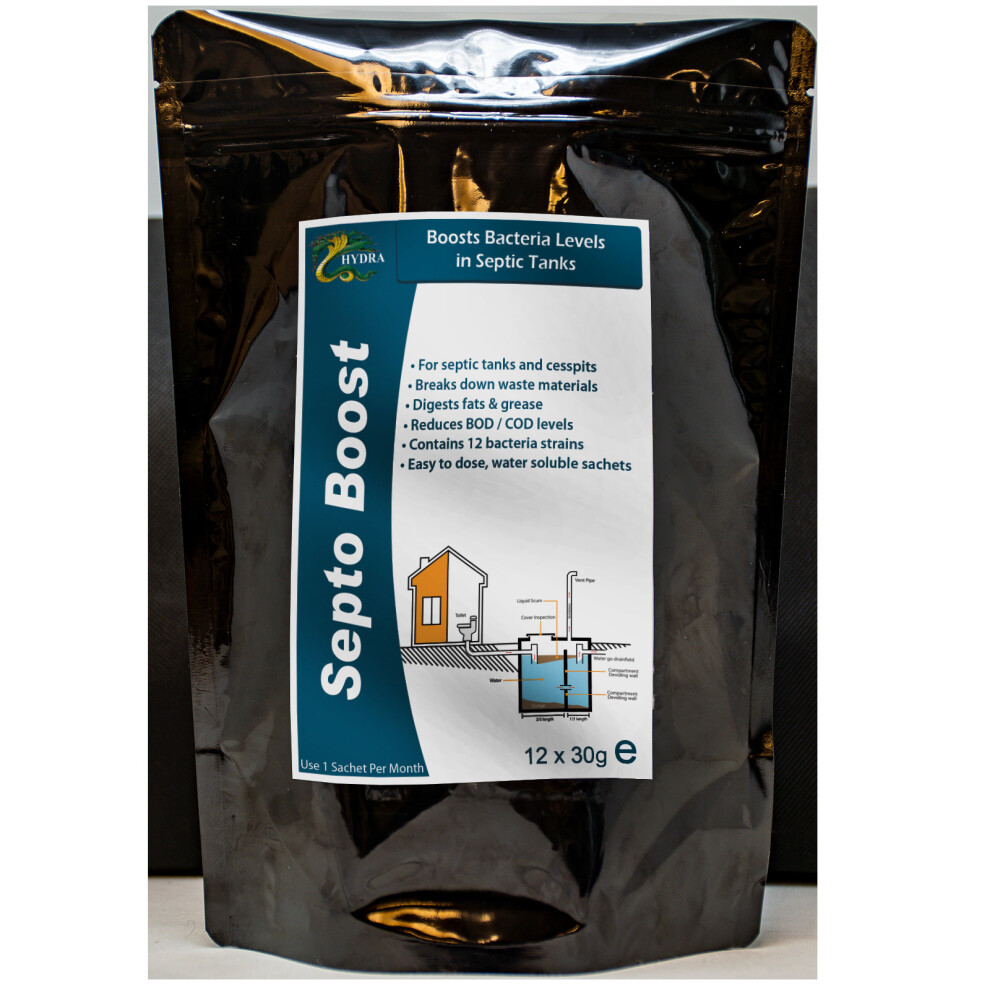 Hydra (12x30g 12months) Septo Boost (Septic Tank Bacteria)21.92Buy!£Onbuy.comDelivery: in United Kingdom ReportFeatures & Advantages Use Septo Boost in cesspools, cesspits and septic tanks to achieve the efficient breakdown of waste material. Helps in...