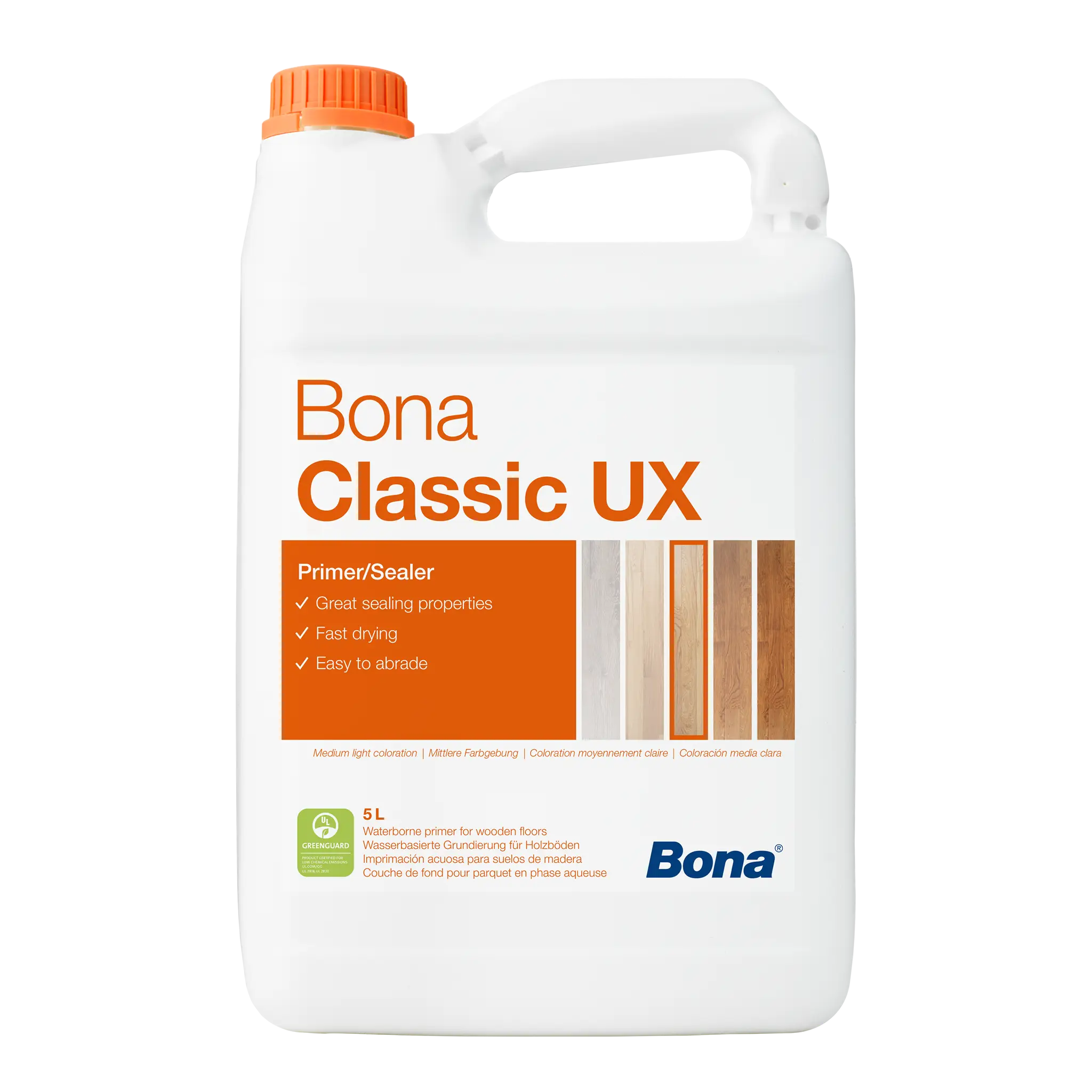 Bona Classic UX Primer 5L, Classic Medium Light Wood Look75.08Buy!£Wood-finishes-direct.comDelivery: in United Kingdom ReportA trade quality, non-yellowing water-based primer for use on all wooden flooring Produces a medium light wood colouration and retains the natural appearance of the wood Elastic properties allow for in more→creased flex and movement High solids content for ease of creating a well-bodied surface Low V.O.C and awarded the EC1Plus certification