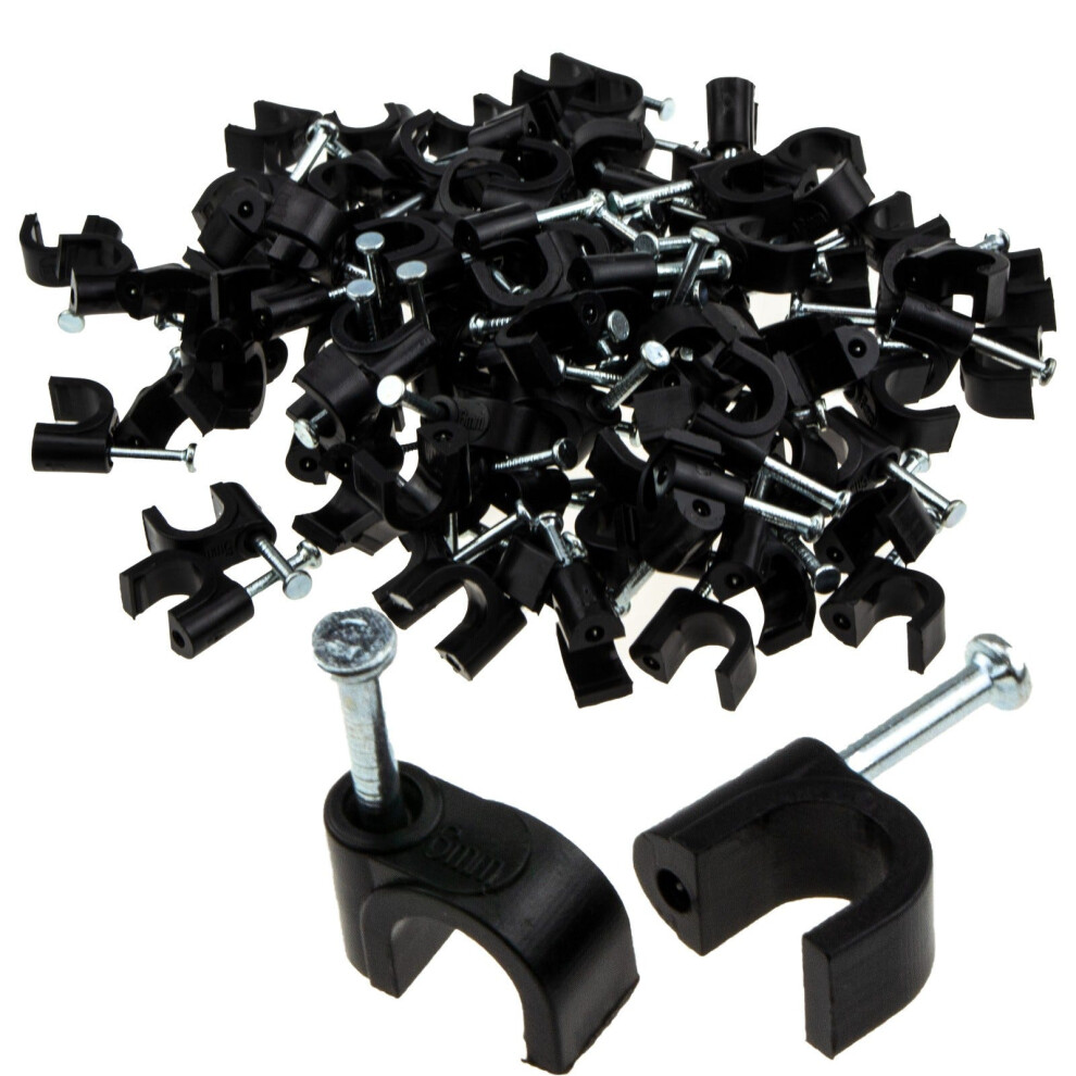 Kenable Round Black 6mm Cable Clips Secure Fastenings Cables 004500 [100 Pack]2.20Buy!£OnBuy.comDelivery: in United Kingdom ReportA pack of 100 6mm round cables clips for securing 6mm black cable. Designed with a tough shock resistant body and high impact nails the clips are...