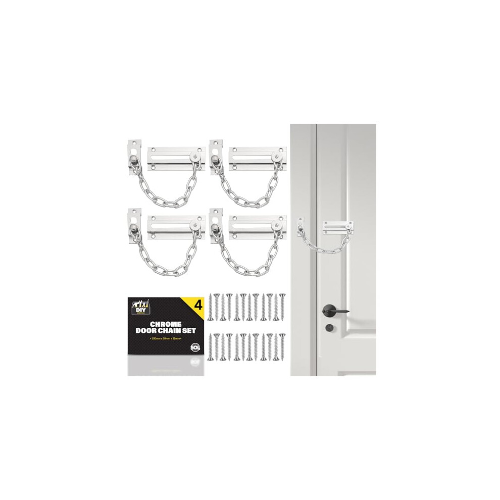 SOL 4pk Chrome Door Chain Kit Restrictor for Front Door Heavy Duty Safety Chain Lock Home Security Added Protection Peace of10.19Buy!£OnBuy.comDelivery: in United Kingdom ReportSOL 4pk Chrome Door Chain Kit Restrictor for Front Door Heavy Duty Safety Chain Lock Home Security Added Protection Peace of Mind Durable Metal...