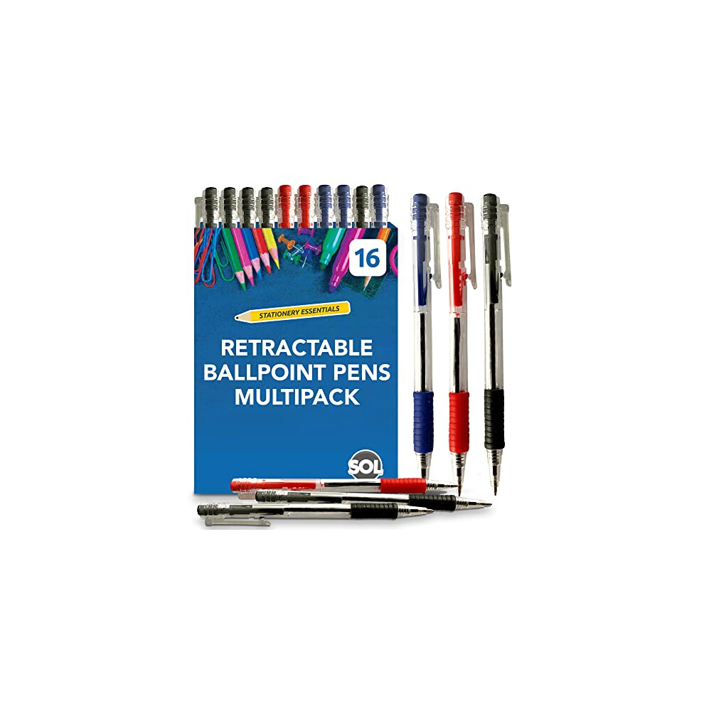SOL 16pk Retractable Ballpoint Pens Multipack, Smooth Writing Biros Multipack Colours Pen, Durable Clip-On Design, Comfortab8.29Buy!£Onbuy.comDelivery: in United Kingdom ReportSOL 16pk Retractable Ballpoint Pens Multipack, Smooth Writing Biros Multipack Colours Pen, Durable Clip-On Design, Comfortable Grip, Ideal for Office,