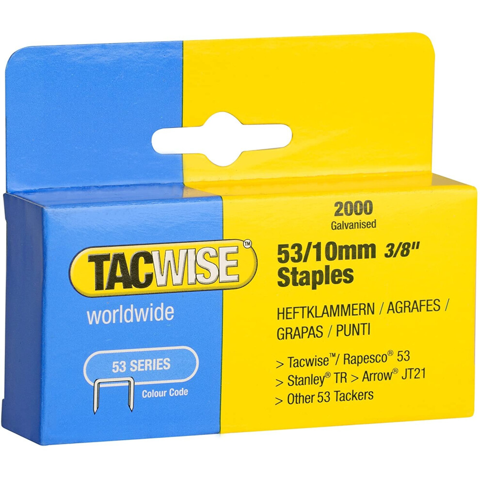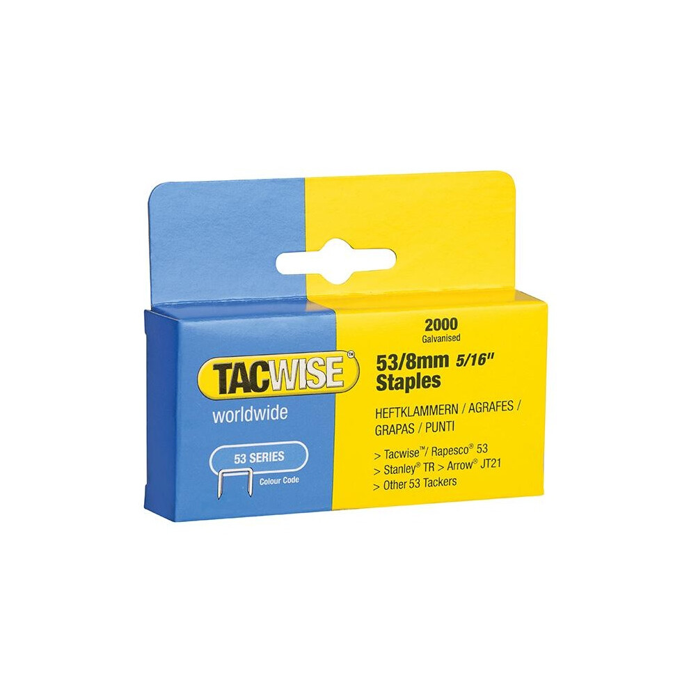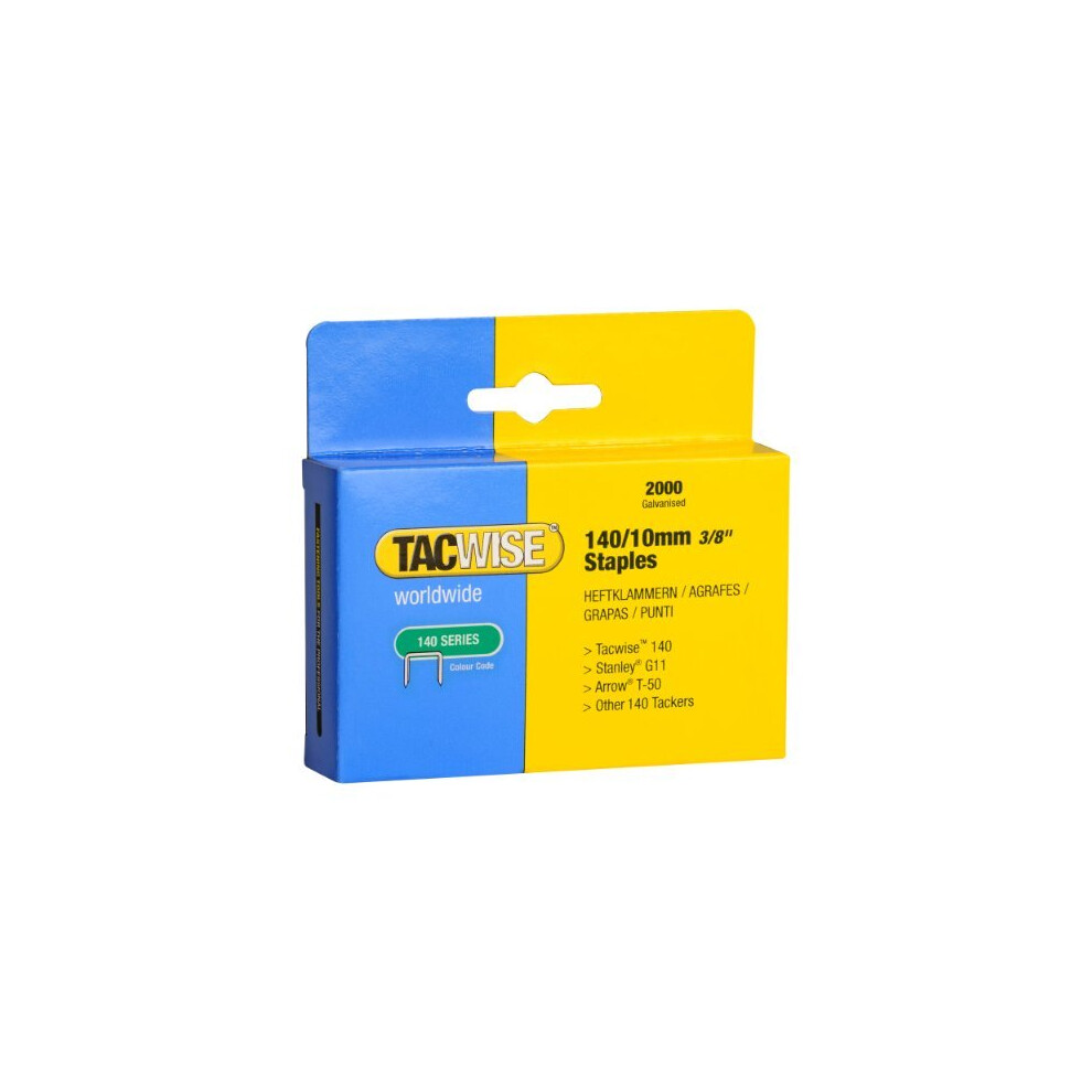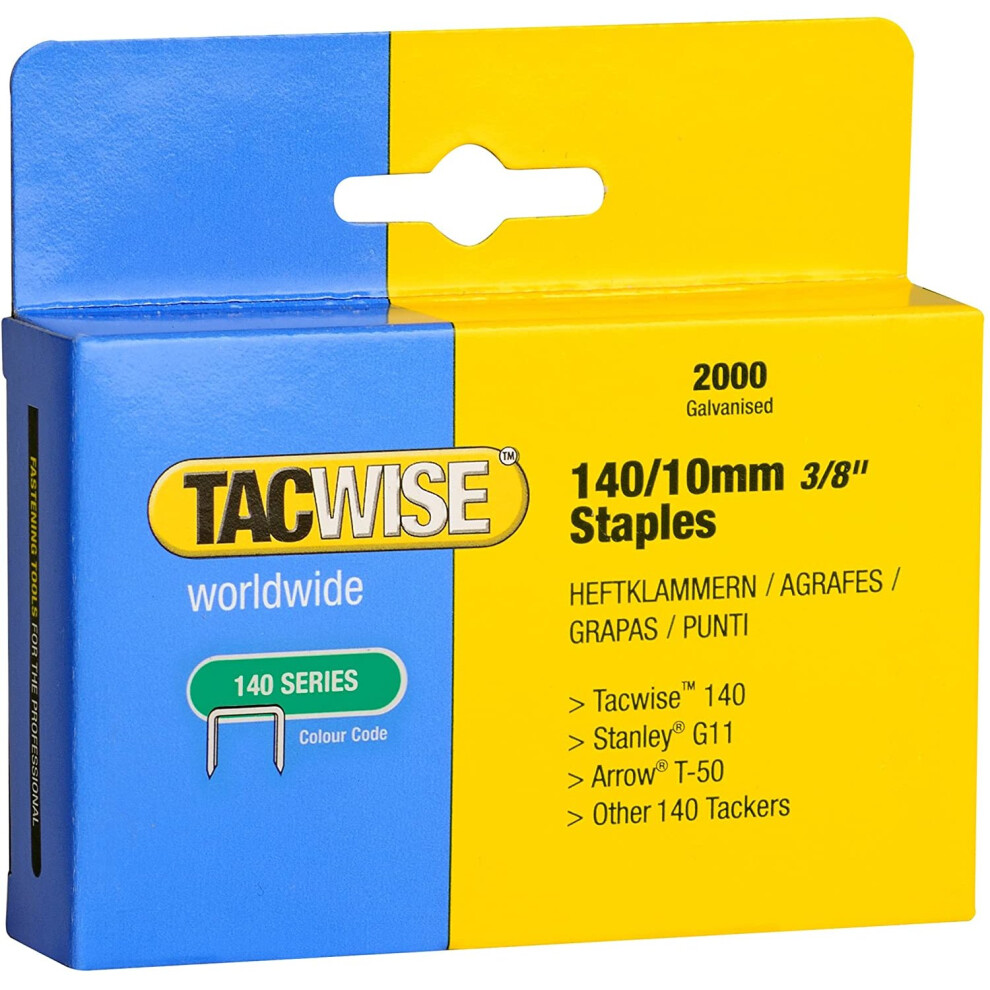 Tacwise manufactures a wide variety of staples made from high quality materials, available in a range of finishes and sizes to suit any fastening needs. Useful for heavy duty upholstery, installing in more→sulation, house wrap and roofing felt, home repairs and crafts due to their rust resistant, galvanised coating and strong holding capabilities. Popular for fixing fabrics, leather, mesh, plastic sheeting, breathable membrane, foam, carpet and carpet underlay, paper, and cardboard on different materials. Suitable for use in Tacwise Z1-140, Z1-140L, Z3-140, Z3-140L, A11, A54, 140EL, 140-180EL, 140EL Pro and A14014V, as well as Stanley, Rapid, Arrow and other tackers which take the 140 type staples …