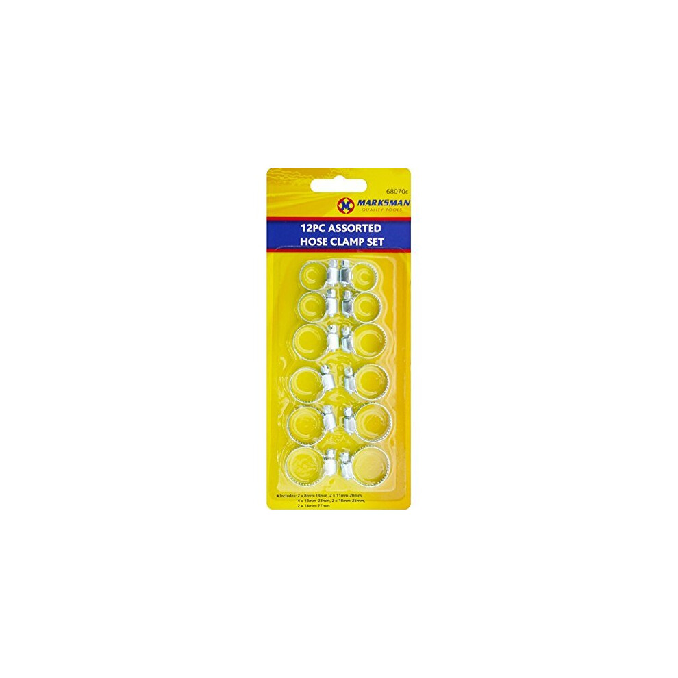 Marksman 12 Piece Hose Clamp Jubilee Clip Set (16, 18, 23, 25, 27mm)12pc Hose Clamp Set This great value 12pc hose clamp set is perfect for use in many household and automotive applications such as for use in plumbing. £6.51OnBuy.comDelivery: in United Kingdom ReportBuy!