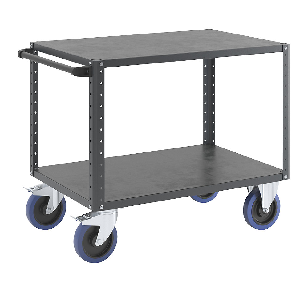 eurokraft pro 2 shelves, 2 shelves, charcoal, fully elastic tyresCustomLine assembly trolley, 2 shelves, charcoal, fully elastic tyres. Supplied = flat pack. Number of levels = 2 pcs. Platform length = 1050 mm. Platform width = 700 mm. Colour = charcoal RAL 7016. Platform material = plastic. Working height = 900 mm. Max. load = 500 kg. Shelf heights = 275/900 mm. Length = 1050 mm. Width = 700 mm. Height = 900 mm. Wheel fittings = 2 swivel castors with double stops, 2 fixed castors. Wheel type = solid rubber fully elastic. Wheel diameter = 200 mm. Wheel bearing = roller bearing. Number of shelves = 2 pcs. Panel thickness = 32 mm. Customs tariff number = 87168000. Country of origin = DEU. Gross weight = 54.15 kg. Weight = 52.4 kg. Can be individually customised … £634.80KaiserKraft.co.ukDelivery: to United Kingdom ReportBuy!