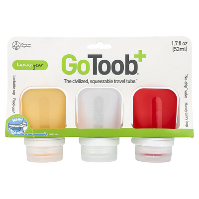Clear Humangear, GoToob+®, Travel Tube, Small, Red, & Orange, 3 Pack, 1.7 fl oz Each HMG-53155 (53 ml)17.66Buy!£iHerb.comDelivery: in United Kingdom Report