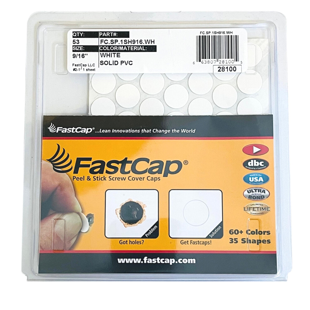 FastCap Peel & Stick White Screw Cover Caps PVC 14mm x 53 (9/16")Fastcap™ is the finishing touch to a professional job! Fastcaps™ are self-adhesive cover caps made with high-performance acrylic... £6.49OnBuy.comDelivery: in United Kingdom ReportBuy!