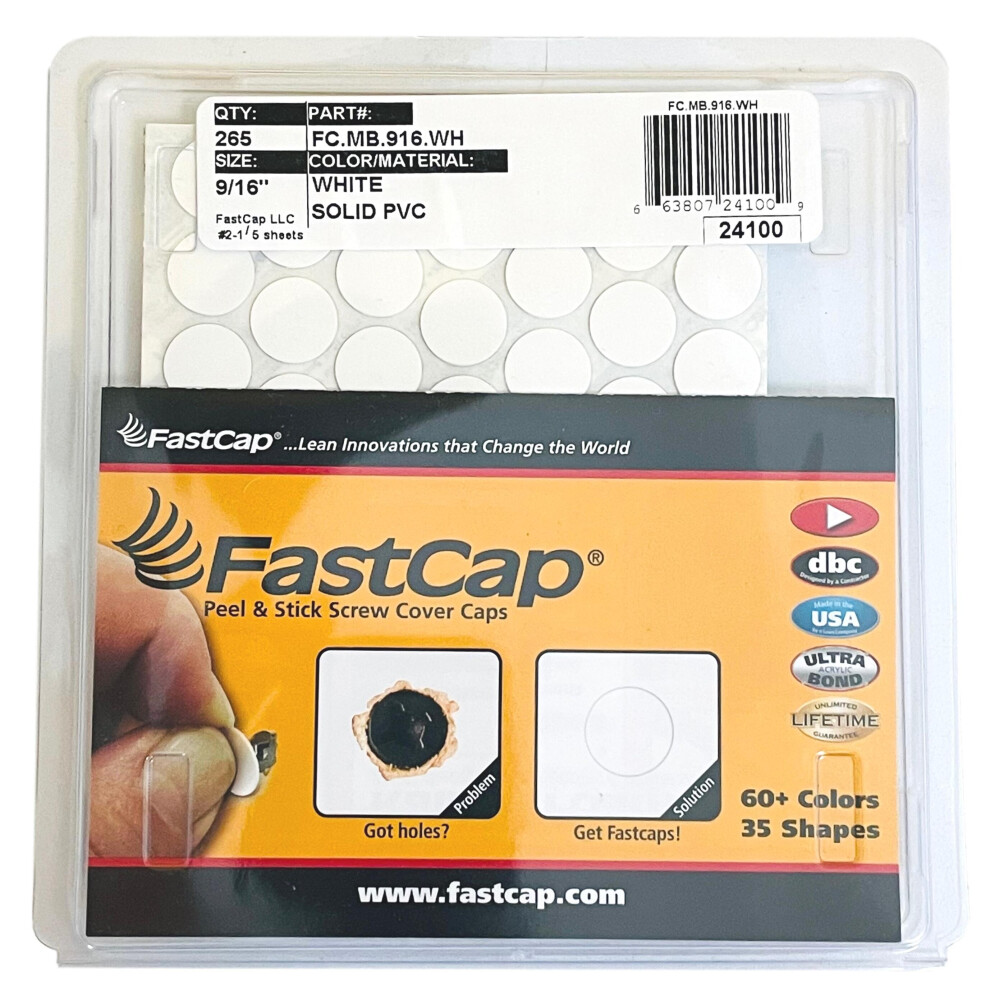 FastCap Peel & Stick White Screw Cover Caps PVC 14mm x 266 FC.MB.916.WH (9/16")Fastcap™ is the finishing touch to a professional job! Fastcaps™ are self-adhesive cover caps made with high-performance acrylic... £13.99OnBuy.comDelivery: in United Kingdom ReportBuy!