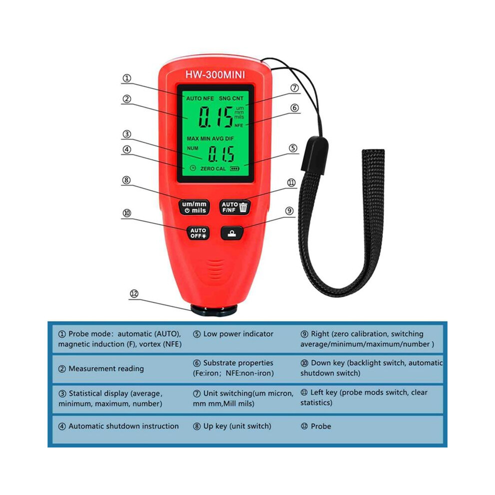 Jehiatek HW300MINI Digital Thickness Gauge Tester Auto Car Paint Measuring Instrument Layer Device Tool Red1.Compact and Easy to Carry: This coating thickness gauge is small and convenient, easy to install, and can be carried and used anytime and anywhere. £16.86OnBuy.comDelivery: in United Kingdom ReportBuy!