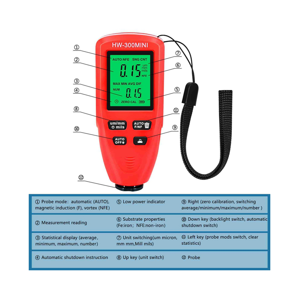 HW-300MINI Coating Thickness Gauge 0-2000UM Measuring Paint Tools Portable Car Coating Thickness Measurer RedFeature: 1. Compact and Easy to Carry: This coating thickness gauge is small and convenient, easy to install, and can be carried and used anytime... £20.38OnBuy.comDelivery: in United Kingdom ReportBuy!