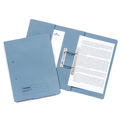 Exacompta Guildhall Spring Pocket Transfer File Manilla Foolscap 285gsm Blue - 347-BLUZ 347-BLUZ (Pack 25)from £34.46 up to £59.67 Compare prices6→These strong 285gsm folders create a stylish filing solution for reports presentations and more and are ideal for use in the office home or classroom. The metal spiral fitting secures punched papers i more→n place and allows them to be worked on whilst in the file. The useful pocket also allows you to store unpunched papers. These colourful files can be used as part of a colour coordinated filing system and have a 350 sheet capacity.