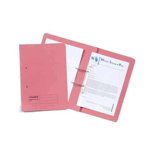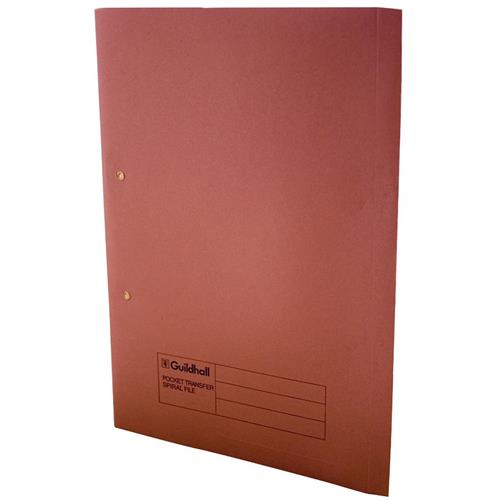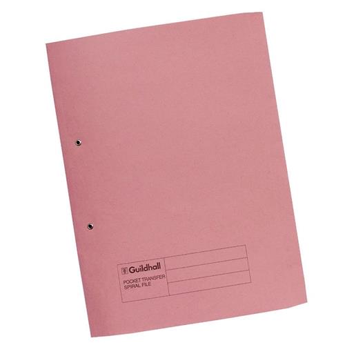 SPRING Guildhall Pocket Transfer File Manilla Foolscap 285gsm Pink - 347-PNKZ 347-PNKZ (Pack 25)from £40.64 up to £59.67 Compare prices4→These strong 285gsm folders create a stylish filing solution for reports presentations and more and are ideal for use in the office home or classroom. The metal spiral fitting secures punched papers i more→n place and allows them to be worked on whilst in the file. The useful pocket also allows you to store unpunched papers. These colourful files can be used as part of a colour coordinated filing system and have a 350 sheet capacity.