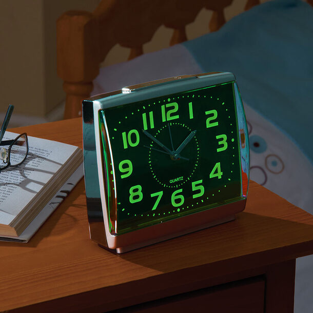 Easylife Easy-Read Glow-In-The-Dark Alarm Clock12.99Buy!£Easylife.co.ukDelivery: in United Kingdom ReportThe luminescent face and large numbers let you tell the time even in pitch dark. And because it's silent, with no 'ticktock', it won't keep you awake - until the alarm goes off. Simple to set and hig more→hly dependable - thanks to its precision quartz movement - it also features an integral light (useful if you're a little bleary-eyed). Powered by 1xAA battery (not included), it measures: L13xW14xD5cm | Easylife Easy-Read Glow-In-The-Dark Alarm Clock Selling Fast!