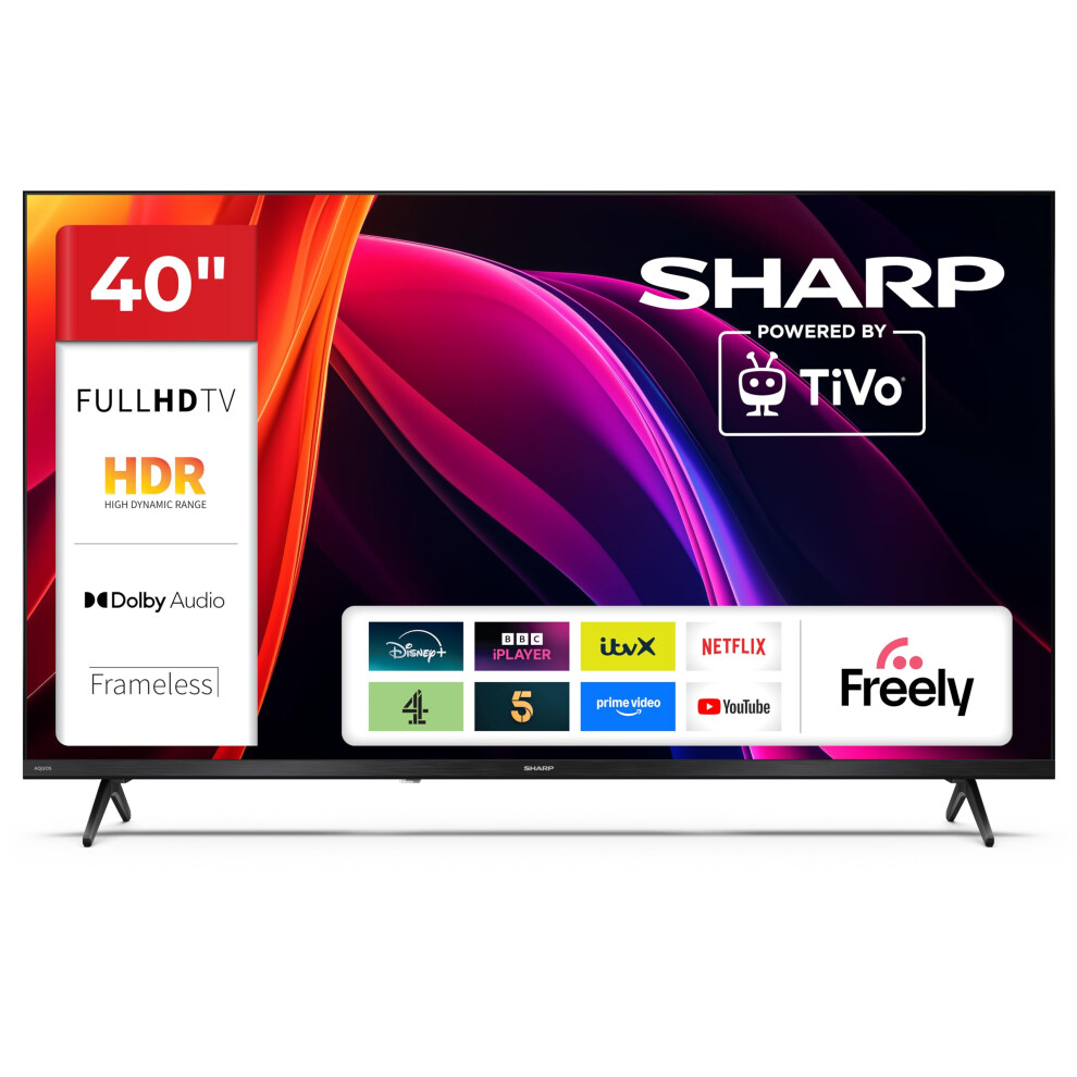 Sharp 40-inch Full HD Powered by TiVo Smart TV TiVo+ Free Channels Dol333.32Buy!£Onbuy.comDelivery: in United Kingdom ReportSHARP 40" FULL HD SMART LED TV - A trusted Sharp brand 40-inch Full HD LED screen with HDR10/HLG support and frameless styling for crisp...