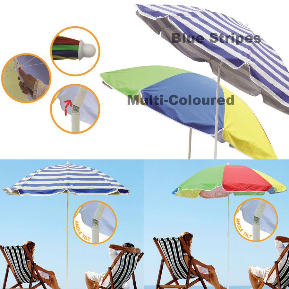 My Garden Garden Beach Patio Tilting Tilt Umbrella Sun Shade Protection UPF40 1.8M (Multi-Coloured)14.99Buy!£Onbuy.comDelivery: in United Kingdom ReportUPF 40 Blue Striped / Multi-Coloured or Sun Striped Parasol with Tilting Function This is a polyester beach parasol (6 ft/1.8 m diameter),