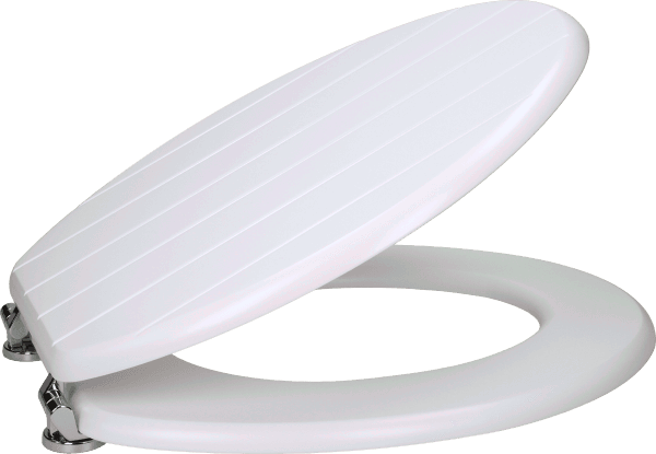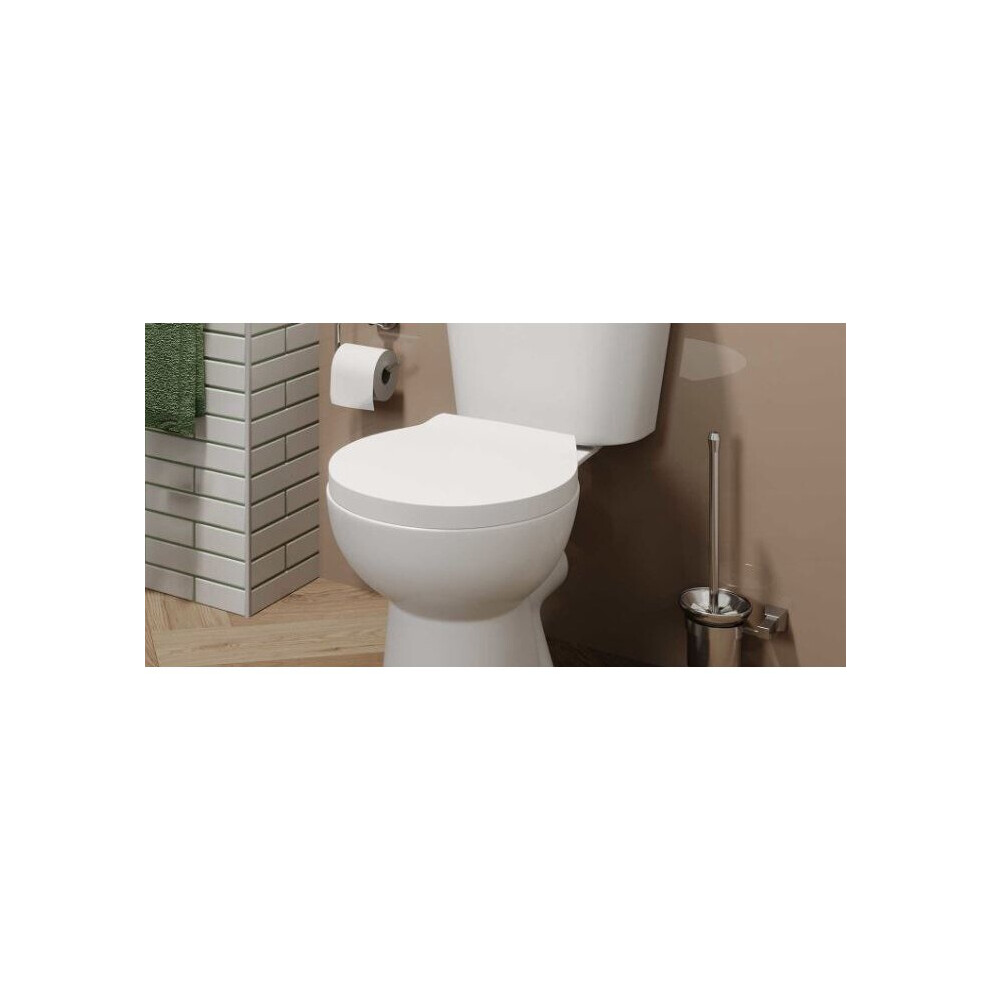 Euroshowers MDF Moulded White Value Heavy weighted toilet seat. Round white plastic hinges. £24.95Onbuy.comDelivery: in United Kingdom ReportBuy!