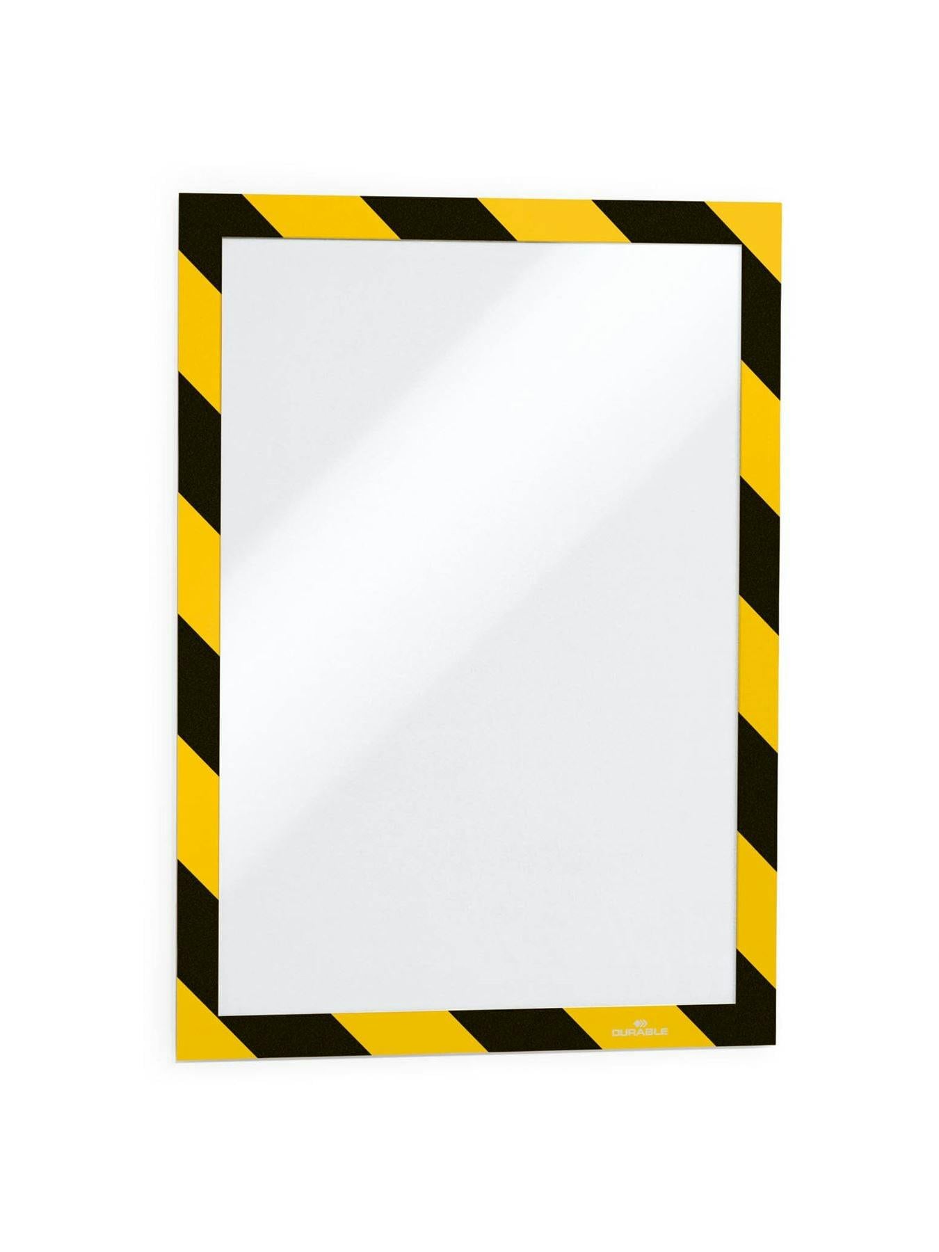 Durable Rackhams DURAFRAME Adhesive Magnetic Hazard Frame | 2 Pack | A4 Black & Yellowfrom £19.74 up to £23.39 Compare prices3→From Durable, the DURAFRAME SECURITY adhesive magnetic hazard frame offers a neat, practical way to present A4 safety signage on solid, smooth surfaces. Designed with a twin-coloured black and yellow more→border, it helps safety information stand out clearly in busy working environments. A unique magnetic fold-back frame allows inserts to be exchanged quickly, making it well suited to areas where notices need updating. When applied to glass, information can be read from both sides, supporting clear communication on doors, partitions and internal windows. The self-adhesive backing is also designed to leave no residue when removed. Key features Pack of 2 Suitable for displaying A4 safety signs …