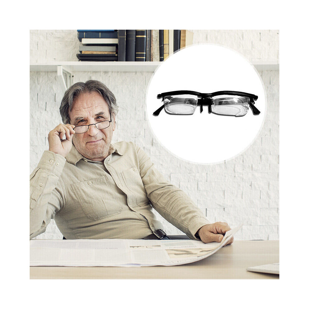 Dial Adjustable Glasses Variable Focus For Reading Distance Vision Eyeglasses5.99Buy!£OnBuy.comDelivery: in United Kingdom ReportSpecifications Adjustable focal length: - 6.00 to + 3.00 Frame color: Black Size: 100mm x 200mm x 70mm/3.94 x 7.87 x 2.76" Material: AP +...