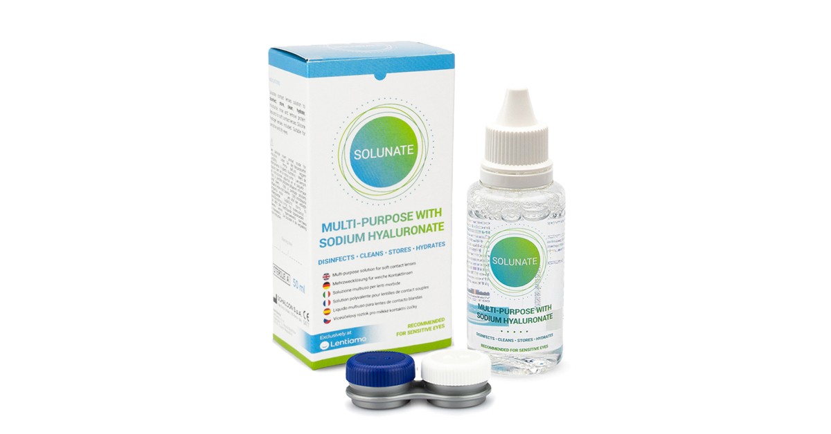 Solunate Multi-Purpose 50 ml with casefrom £3.39 up to £6.59 Compare prices2→Solunate is a multi-purpose solution produced by an Italian manufacturer. The cost effectiveness makes the Solunate solution a very popular choice. The size of the package in 50 ml is perfect for airp more→ort regulations and suitable for travelling. Solunate is one of the best-selling solutions in our e-shop and a good alternative to other versatile solutions, such as ReNu MPS Sensitive Eyes, Biotrue Multi-Purpose or OPTI-FREE. The versatile Solunate solution with hyaluronic acid is designed for disinfecting, rinsing and storing soft contact lenses, including silicone-hydrogel ones. The solution removes protein deposits and is suitable for sensitive and dry eyes. The optimal composition of the Solunate …