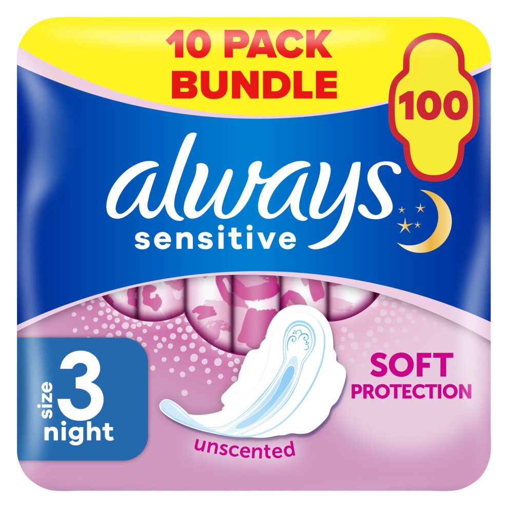 Always Sensitive Ultra Night Sanitary Towels with Wings, Size 3, 100 Towels , Saving Box, Odour Neutraliser, (10 x 10 Packs)17.24Buy!£OnBuy.comDelivery: in United Kingdom ReportAlways Sensitive Ultra Night Sanitary Towels with Wings, Size 3, 100 Towels (10 x 10 Packs), Saving Box, Odour Neutraliser, Super Absorbent Core,