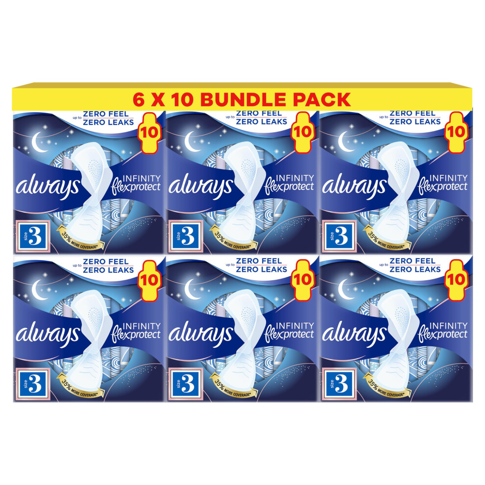 Always Infinity Flex Protect Night Size 3 Sanitary Towels With Wings 10 Pack22.95Buy!£OnBuy.comDelivery: in United Kingdom ReportAlways Infinity Flex Protect Night Size 3 Sanitary Towels With Wings 10 Pack Absorbs like no other, Feels like nothing Thanks to its super-absorbent...