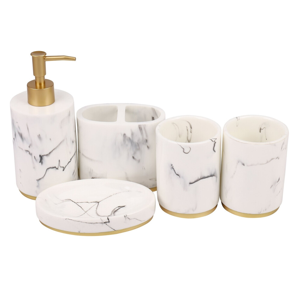 Marble Pattern 5-Piece Bathroom Accessories Set - Gold & White Resin with Chrome Pump Dispenser, Toothbrush Holder & Soap Difrom £33.93 up to £36.75 Compare prices2→Elevate your bathroom with the Bathroom Accessories Set - a 5-piece bath ensemble crafted in a stylish gold and white marble pattern. Made from...