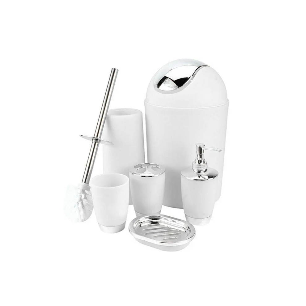 6-Piece White Plastic Bathroom Accessories Set - Durable with Trash Can, Dispenser, Toothbrush Holder, Soap Dish & Toilet Br22.14Buy!£Onbuy.comDelivery: in United Kingdom ReportElevate your bathroom with the 6 Piece Bathroom Accessories Set in a pristine white finish. Ideal for homes, hotels, office buildings and other uses,