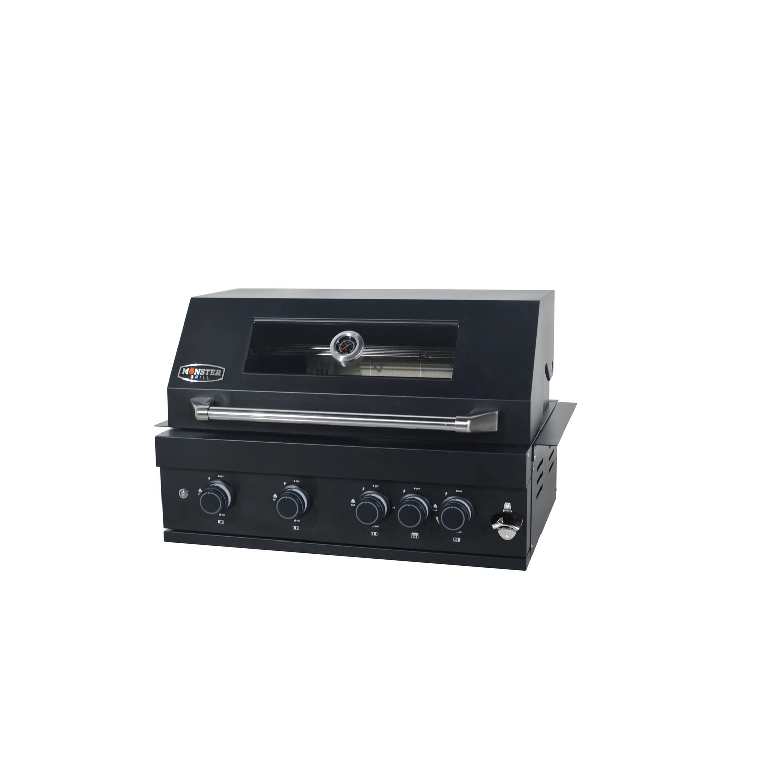 Monster Grill 4 Burner Built-In Gas BBQ - Black CP413. . . . . MGINTBB4. --> BUILT-IN FOUR-BURNER GAS BBQ IN BLACK . Viewing windowCheck food without lifting the lid to help maintain consistent temperatures. Infrared back burnerDelivers intense heat ideal for rotisserie cooking and finishing. LED control knobsTwo-colour LED knobs offer clear visibility and modern styling for easier heat control. Built-in bottle openerA convenient addition for outdoor entertaining. Stainless steel cooking gridsDurable and easy to clean with even heat distribution. Warming rackKeeps food warm while cooking continues below. Black coated stainless steel finishBold modern look with outdoor durability. Integrated storage Under-sink cupboard2 drawersGas canister >… £699.00AppliancesDirect.co.ukDelivery: in United Kingdom ReportBuy!