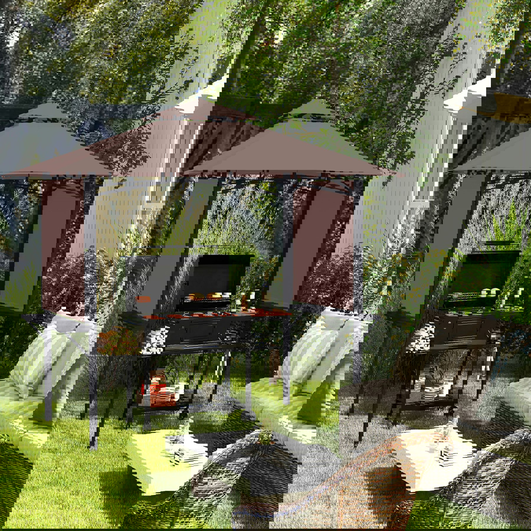Outsunny Rackhams Party BBQ Outdoor Camping Patio Canopy Awing Waterproof Coffee - Brown - Polyester, Metal - 245L x 148W x 255The Outsunny BBQ Shelter is designed to keep your outdoor cooking area covered while you cook. Built with a metal frame and a double waterproof canopy cover, it also allows air circulation for a more comfortable setup when grilling and serving. Practical for entertaining, this BBQ tent features two side horizontal areas for placing items as you serve, or for keeping drinks close to hand. It also comes with ground nails to help secure the shelter firmly in place, making it a useful addition to patios, camping setups and outdoor gatherings. Key features BBQ shelter designed to keep your cooking area under cover Metal frame construction Double waterproof canopy cover Canopy design allows …Price from £119.00 up to £206.00 Compare prices and buy Outsunny Rackhams Party BBQ Outdoor Camping Patio Canopy Awing Waterproof Coffee - Brown - Polyester, Metal - 245L x 148W x 255 tjhughes.co.uk (United Kingdom) →£119.00RobertDyas.co.uk (United Kingdom) →£129.00Debenhams.com (United Kingdom) →£133.00Rackhams.com (United Kingdom) →£140.00BuyToGive.co.uk (United Kingdom) →£160.00Compare prices6→