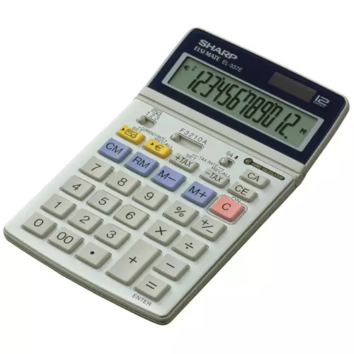 Sharp EL-337C calculator SH02275from £17.90 up to £34.00 Compare prices6→Features: -12-Digit -Large Vari-tilt Display -Semi-Desk Top -Twin Powered -4-Key Memory -GT-Add Mode -Euro-conversion feature -Resume Function < more→br /> -Answer Check Function -Plastic Keys