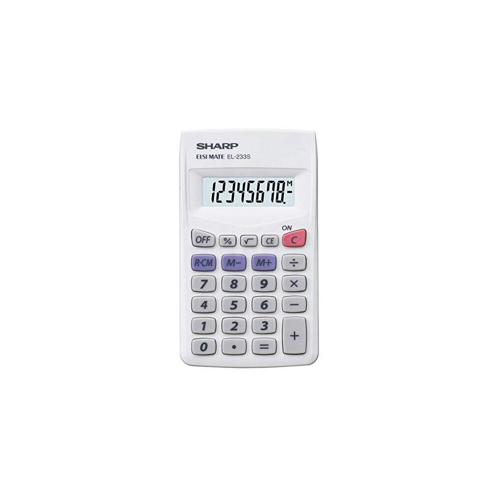 Sharp 8 Digit Battery (White)10.73Buy!£OnBuy.comDelivery: in United Kingdom ReportThis 8-digit pocket calculator is perfect for school, home, or the office. Features a large 10mm digit LCD display and durable plastic keys. The...