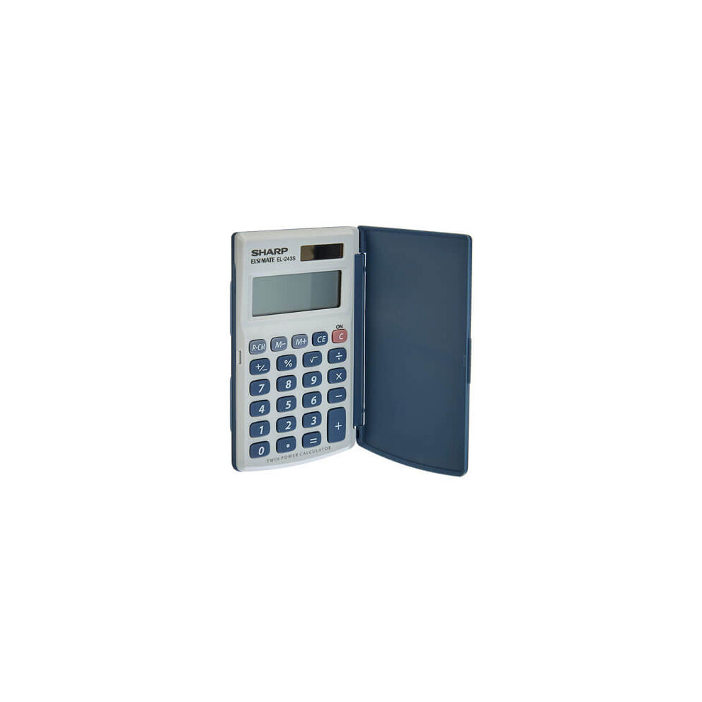 Sharp 8 Digit Dual Power (Hard Cover)19.37Buy!£OnBuy.comDelivery: in United Kingdom ReportSHARP el243s pocket calc Silv el243s Large 8-Digit Display Twin Power Source (battery and solar) Lift-back hard cover Percentage Key Root Key