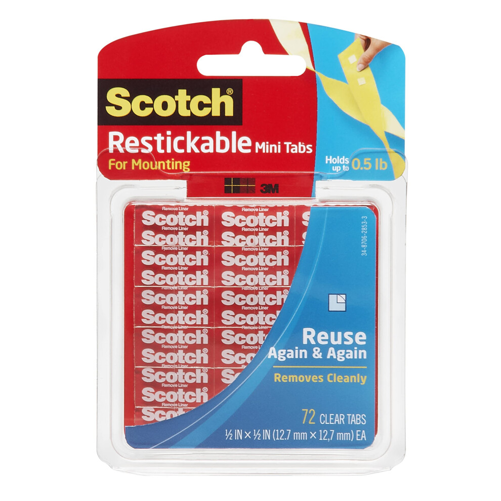 3M Scotch Restickable Squares, 0.5"x0.5", 72 Count, Clear Double-Sided Mounting Pre-Cut Squares, Remove Cleanly, Photo-Safe AdhReinvent your décor again and again with Scotch Restickable Mounting Squares. These innovative double-sided squares allow you to mount-and... £25.48OnBuy.comDelivery: in United Kingdom ReportBuy!