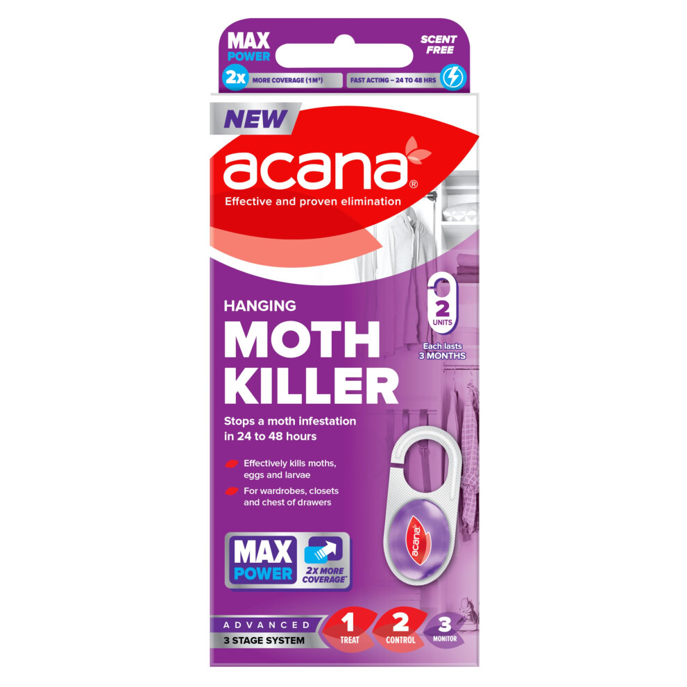 ACANA Hanging Moth Killer 2 pack For Wardrobes - Max Performance - Kills in 24 to 48 Hours - Protects Clothing & BeddingAcana Hanging Moth Killer 2 pack For Wardrobes - Max Performance - Kills in 24 to 48 Hours - Protects Clothing & Bedding UK'S NUMBER 1 FOR... £12.48OnBuy.comDelivery: in United Kingdom ReportBuy!