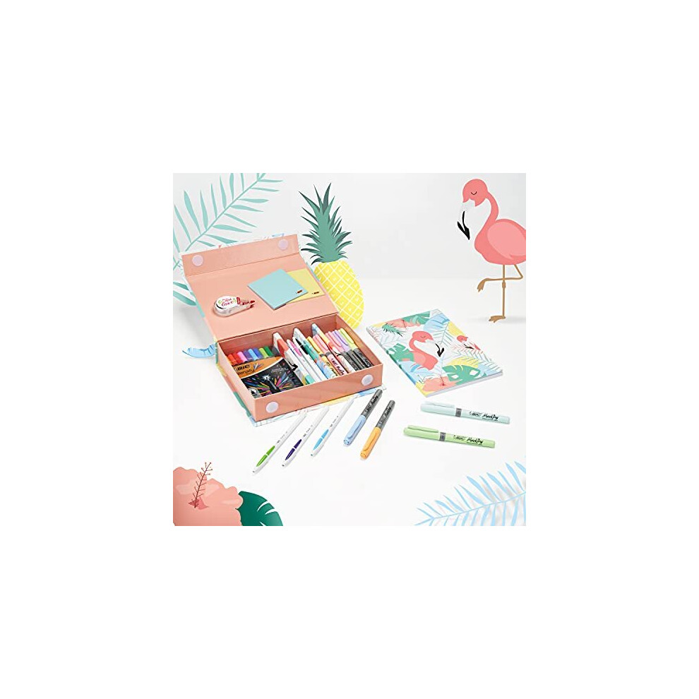 | This exclusive bundle features the Pukka Pad A4 Metallic Jotta Book 3 Pack and the BIC Cristal Original Ballpoint Pens Pack of 10, designed to meet your writing, note-taking, and organising needs. The Pukka Pad notebooks are wirebound for durability and contain 200 pages of 80 GSM paper with 8mm lines, making them ideal for school, office, or home use. Each page is perforated for easy removal and comes pre-punched with 4-hole margins, allowing you to neatly store your notes in a binder. The BIC Cristal Original Ballpoint Pens Pack includes 10 pens with medium 1.0mm tips in assorted colours: 4 blue, 2 red, 2 green, and 2 black. The clear hexagonal barrel design provides a comfortable grip and … | |