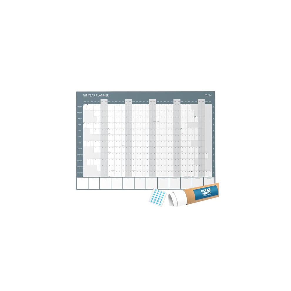 Clear Year Wall Planner by Mind Concepts? - Large A1 Calendar - Includes All Bank Holidays - Ideal for 2024 (84.1 x 59.4cm)Features ... £22.88OnBuy.comDelivery: in United Kingdom ReportBuy!