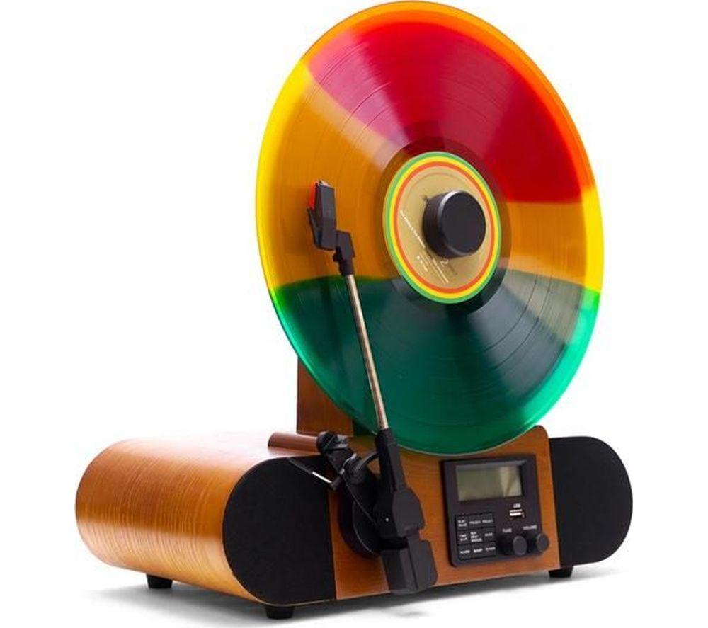 FUSE Vert Belt Drive Bluetooth Vertical Turntable - Brown & Black, Brown,BlackEver tried playing your records upright? The Fuse Vert turntable plays your records vertically, so it saves space and turns heads at the same time. You can stream straight from your phone over Bluetooth, so you don't need any wires. And thanks to the Fuse Audio cartridge, your music sounds smooth and vibrantGood to know- It plays all your records at 33 1/3, 45, and 78 RPM, so you can enjoy every vinyl in your collection- The built-in stereo speakers mean you can start listening straight away without extra kit- If you want you can connect bigger speakers using the RCA output - FM radio and USB playback give you extra ways to enjoy your music- The clear LCD display makes it simple £159.00Currys.co.ukDelivery: to United Kingdom ReportBuy!