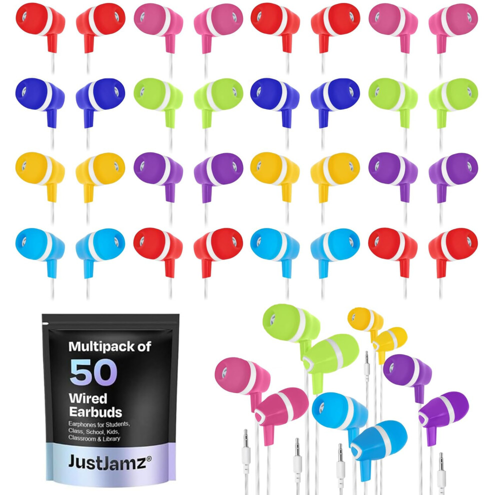 JustJamz Bulk Earbuds Bubbles 50 Pack of Colorful in-Ear Earbuds Mixed Colors Pack of Wired in-Ear Earphones Compatible withFeatures 50 pack headphones: buy in large quantities and save, great quality for the price! Practical and safe earbud headphones: soft silicone, £53.38OnBuy.comDelivery: in United Kingdom ReportBuy!