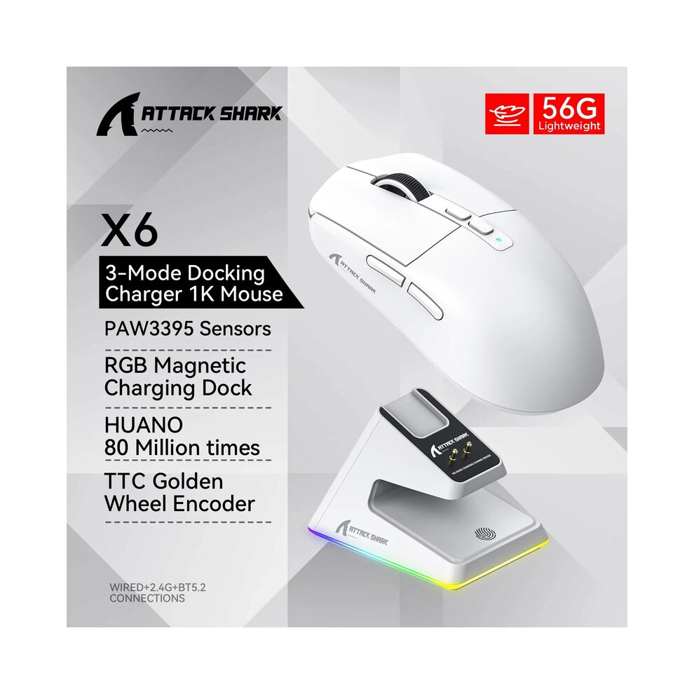 MAXPOWER X6 Lightweight Wireless Gaming with 3 Mode Wired BT5.2 Up to 26K DPI RGB Backlight Charging Base for Laptop De (White)•LightweightWirelessDesign:... £41.17OnBuy.comDelivery: in United Kingdom ReportBuy!