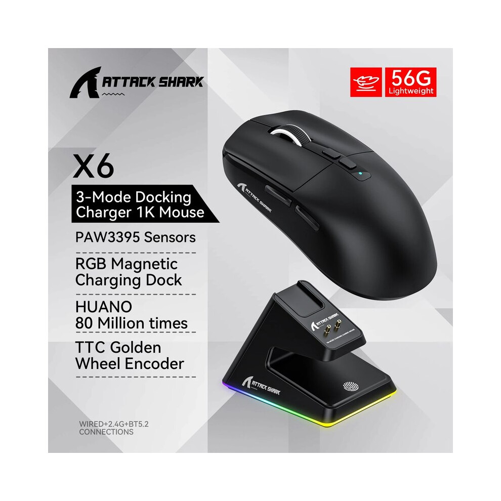 MAXPOWER X6 Lightweight Wireless Gaming with 3 Mode Wired BT5.2 Up to 26K DPI RGB Backlight Charging Base for Laptop De (Black)•LightweightWirelessDesign:... £41.12Onbuy.comDelivery: in United Kingdom ReportBuy!
