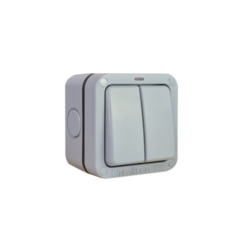 Hamilton Elemento Outdoor Rated 2G Switch IP66 ELMR22NGYPremium quality outdoor rated switch with 2 gangs. Rated at IP66 the Hamilton Elemento series comes with a 10 year guarantee. £17.80ExpertElectrical.co.ukDelivery: in United Kingdom ReportBuy!
