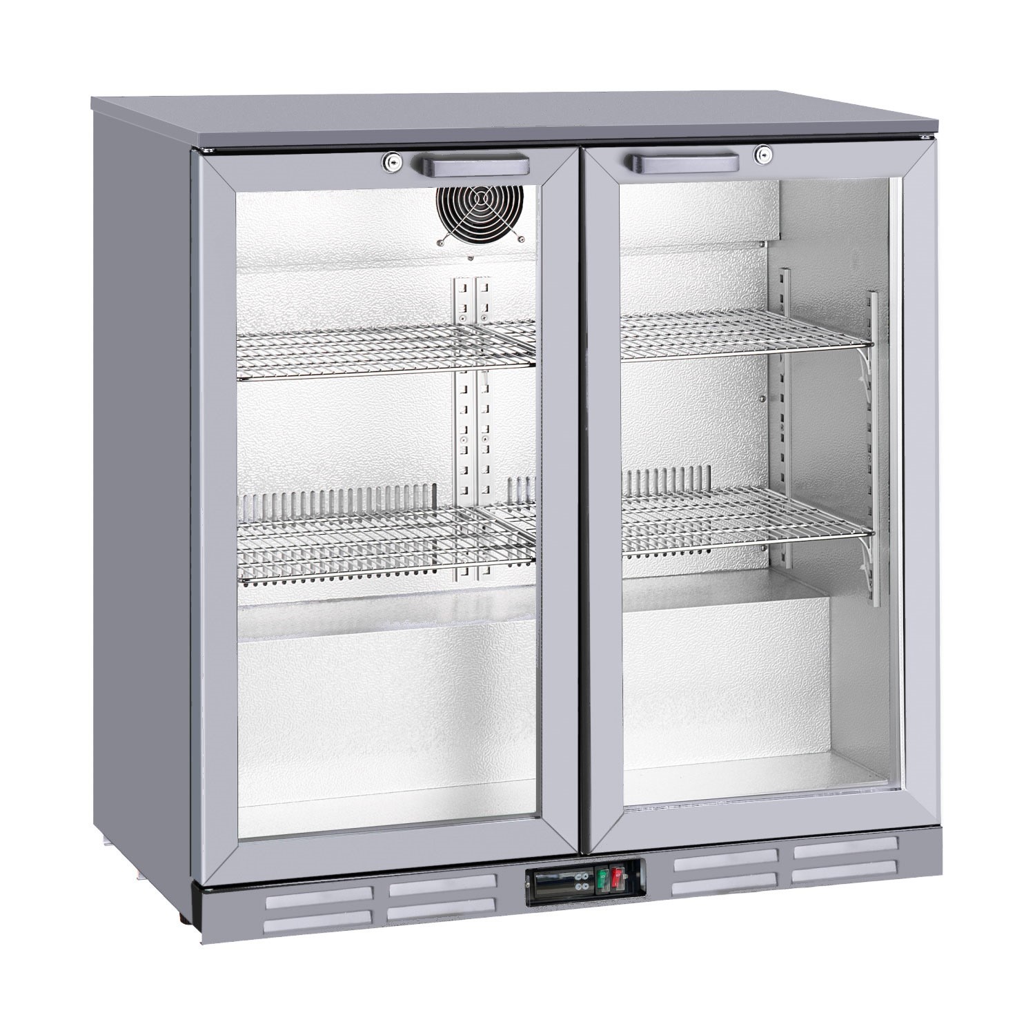 Culinox Double Hinged Door Bottle Cooler - 207Ltr Silver 900mm Wide CNX-BB2HSCulinox Undercounter Double Hinged Door Back Bar Bottle Cooler - Silver Grey 207ltr Key Features Undercounter Design - 895mm High . Fits neatly under standard bar counters Double Hinged Doors . Self-closing glass doors provide clear visibility and easy access 207ltr Bottle Storage Capacity . Ample space for chilled drinks in busy bars or restaurants Ventilated Cooling System . Dynamic airflow ensures even temperature distribution Integrated LED Interior Lighting . Highlights products for clear visibility Adjustable Shelving . Four height-adjustable chrome wire shelves to accommodate various bottle sizes Lockable Doors . Built-in lock for added security in commercial environments Warranty … £358.80AppliancesDirect.co.ukDelivery: in United Kingdom ReportBuy!