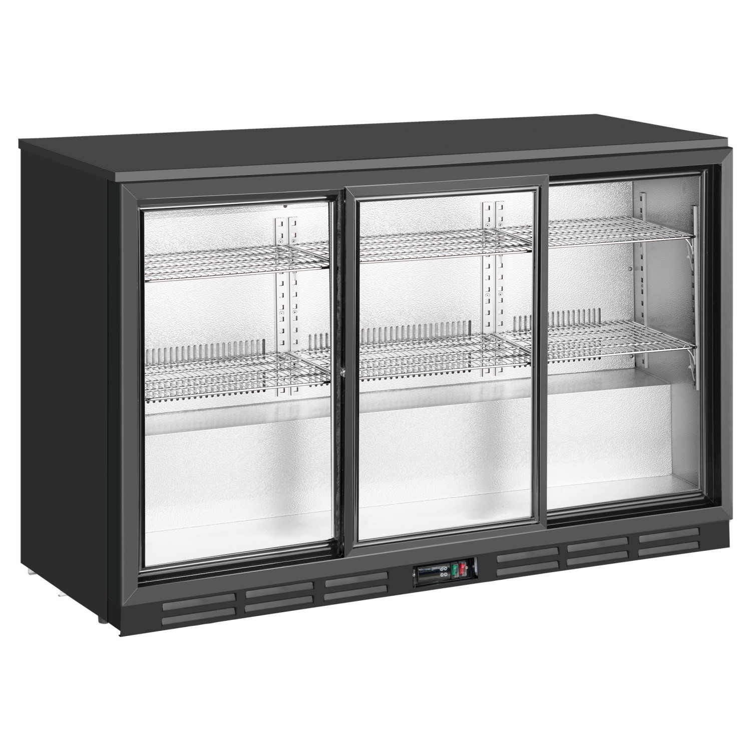 Culinox Triple Sliding Door Bottle Cooler - 328Ltr Black 1350mm Wide CNX-BB3SBCulinox CNX-BB3SB Triple Sliding Door Back Bar Bottle Cooler - 328L Capacity - Black Key Features High-Volume Storage . Large 328-litre capacity holds up to 218 standard 330ml bottles making it ideal for high-footfall bars and pubs. Commercial Build and; Power . Features a robust black exterior with hammered aluminium interior and is fitted with a 13A plug for simple setup. Efficient Cooling . Ventilated cooling maintains a consistent temperature range of 2°C to 10°C to ensure every drink is served perfectly chilled. Space-Saving Design . Triple self-closing sliding doors provide easy access to stock without obstructing narrow walkways behind the bar. Secure and; Supported . Includes … £454.80AppliancesDirect.co.ukDelivery: in United Kingdom ReportBuy!