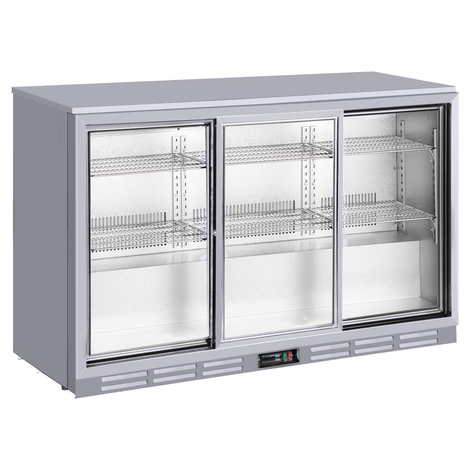 Culinox Triple Sliding Door Bottle Cooler - 328Ltr Silver 1350mm Wide CNX-BB3SSCulinox CNX-BB3SS Triple Sliding Door 328L Back Bar Bottle Cooler – Silver Key Features High-Volume Storage . Ample 328L capacity holds up to 218 x 330ml bottles to keep busy bars and pubs moving during peak service. Heavy-Duty Build and; Power . Features a durable silver exterior with a hammered aluminium interior; fitted with a 13A plug for easy installation. Maximum Cooling Efficiency . Ventilated cooling system ensures even airflow and consistent temperatures between 2°C and 10°C throughout the cabinet. Simple Maintenance and; Sanitation . Includes six adjustable chrome wire shelves and self-closing sliding doors for effortless cleaning and better hygiene. Secure and; Supported … £454.80AppliancesDirect.co.ukDelivery: in United Kingdom ReportBuy!