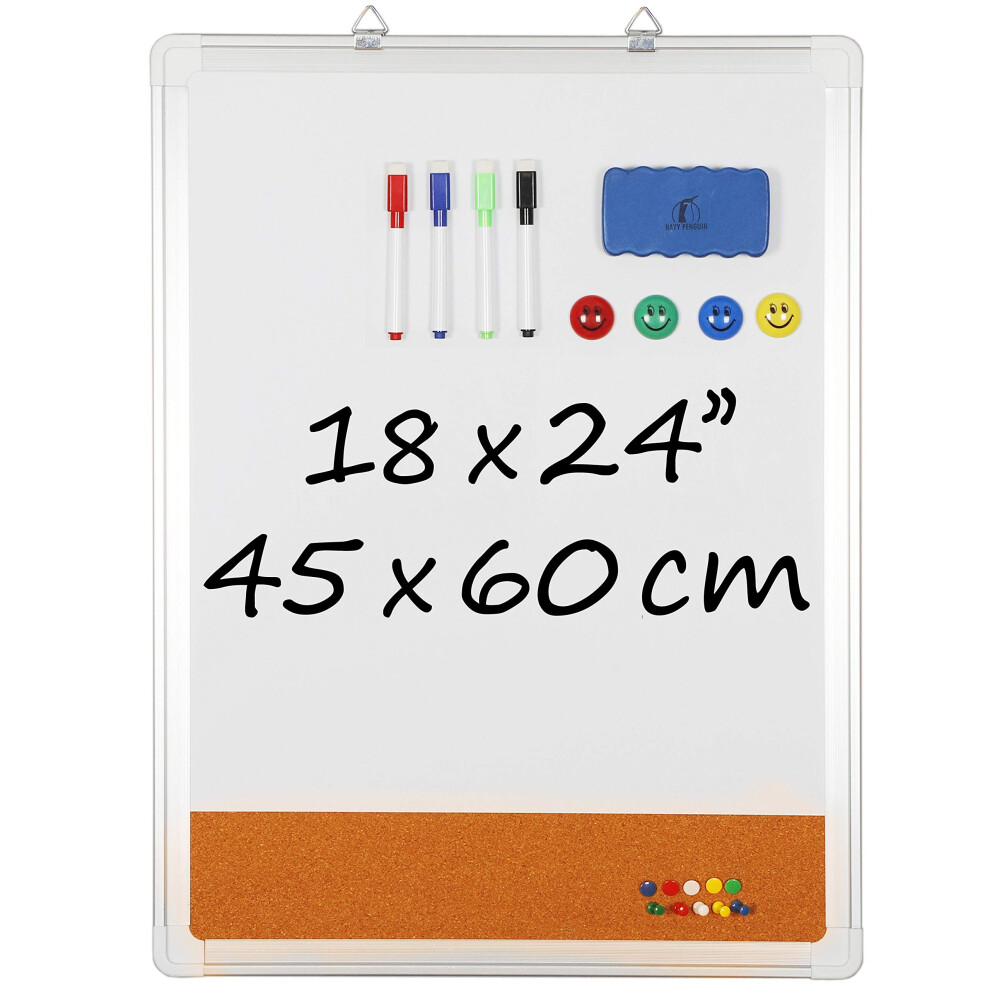 NAVY White Board Cork Board Combo - 18x24 in Dry Erase Board with Cork and 1 Magnetic Eraser 4 Dry Wipe Markers 4 Magnets and 10Whiteboard Cork Board Set - Combination White Board with Cork + Accessories ? Premium Pack - contains 1 combo whiteboard bulletin board + 1 magnetic... £56.52OnBuy.comDelivery: in United Kingdom ReportBuy!