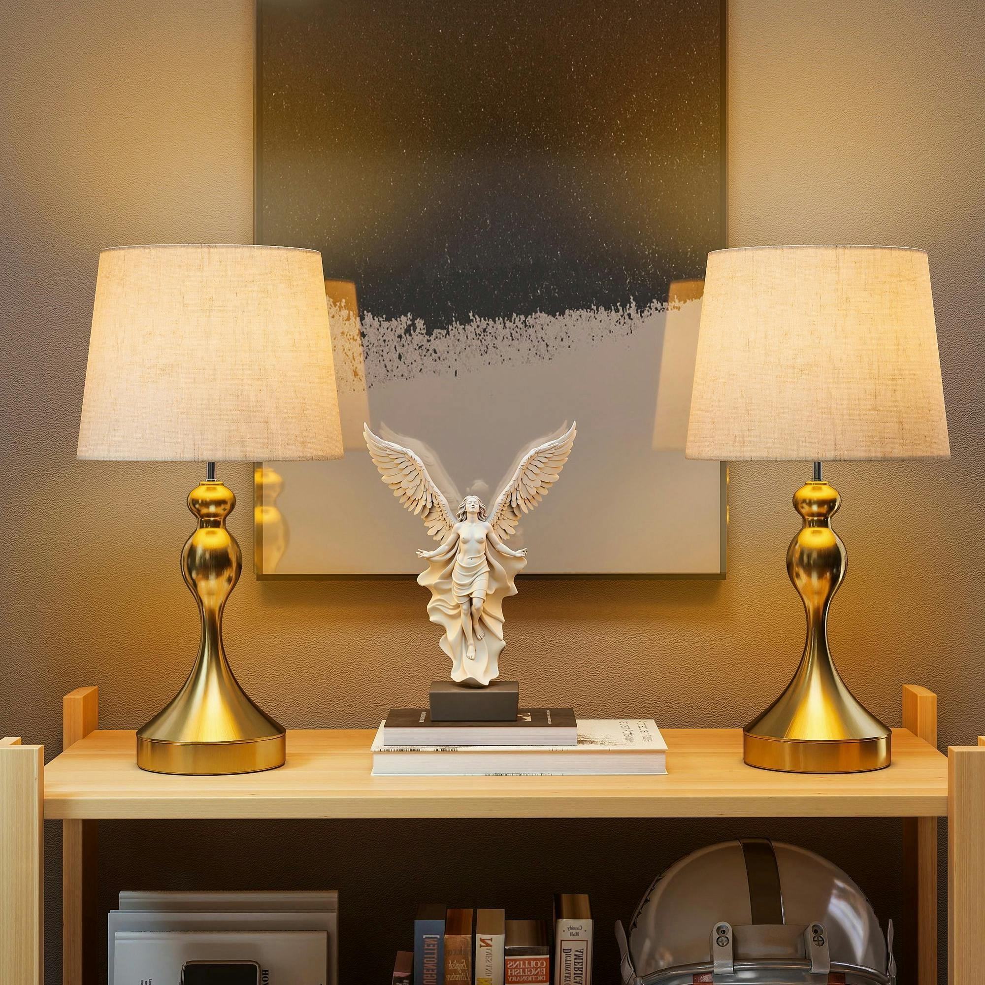 HOMCOM Rackhams Table Lamps Set of 2, Modern Bedside Lamps with USB Ports - Gold Tonefrom £42.99 up to £45.99 Compare prices4→This set of two HOMCOM table lamps offers a clean, modern way to light your space, with a matching design that suits bedside tables and other surfaces around the home. Designed for everyday use, they more→provide practical illumination for reading and relaxing, while keeping your essentials within easy reach. Each lamp features a 9W LED light with adjustable colour temperature, allowing you to switch between 3000K warm white, 4000K neutral white and 6500K cool white to suit the moment. For added convenience, both lamps include USB-A and USB-C ports, making it easy to charge small appliances nearby while you unwind. Key features Set of 2 matching HOMCOM table lamps Modern, minimal design 9W …