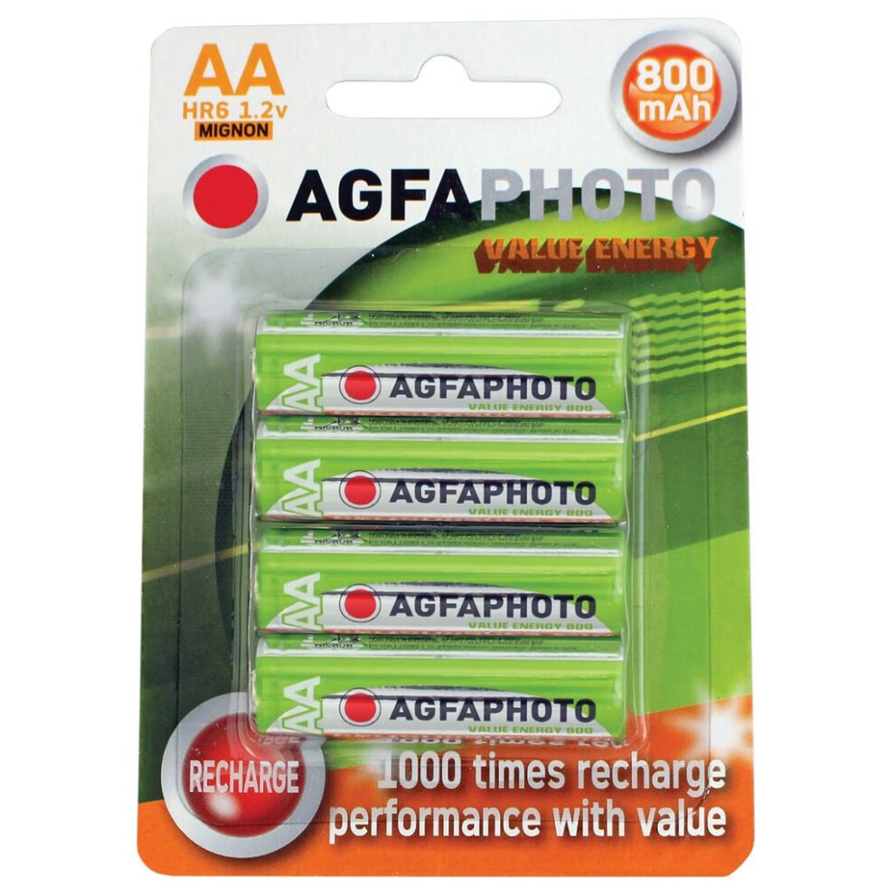 Agfa AGFAPHOTO Rechargeable Nimh - Pack of 4 - Size AA AG6385.29Buy!£Onbuy.comDelivery: in United Kingdom ReportAGFAPHOTO Rechargeable Nimh Battery - Pack of 4 Size AA. mAh 800.