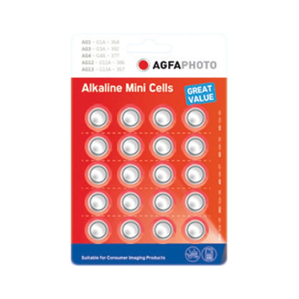 Agfa AgfaPhoto Alkaline Power 5 Types AG635 (Card of Twenty)57.91Buy!£OnBuy.comDelivery: in United Kingdom ReportAgfaPhoto Alkaline miniature cell park containing five of themost popular button cell batteries.