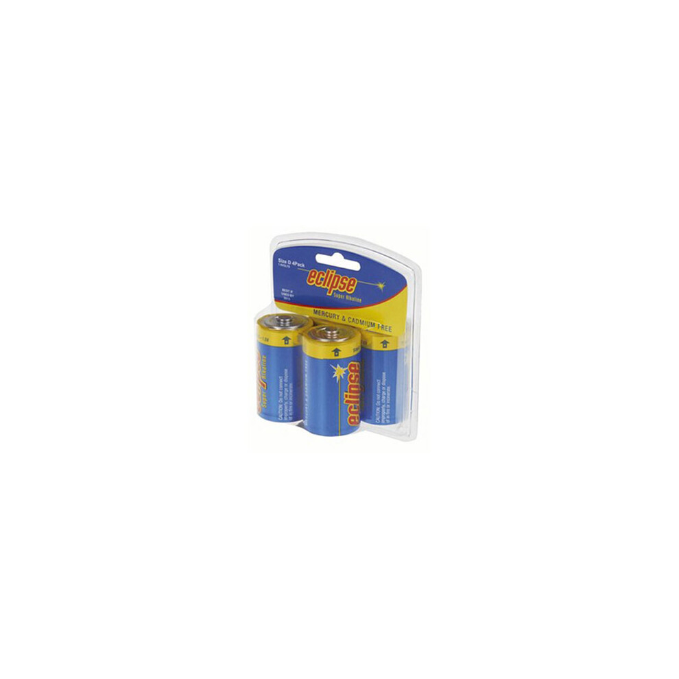 Eclipse Alkaline 4pcs (D)38.03Buy!£OnBuy.comDelivery: in United Kingdom ReportGeneral-purposealkalinebatteries.Notrechargeable. Batteryusage:Disposable BatteryChemicalComposition:Alkaline ConnectionType:Nipple...